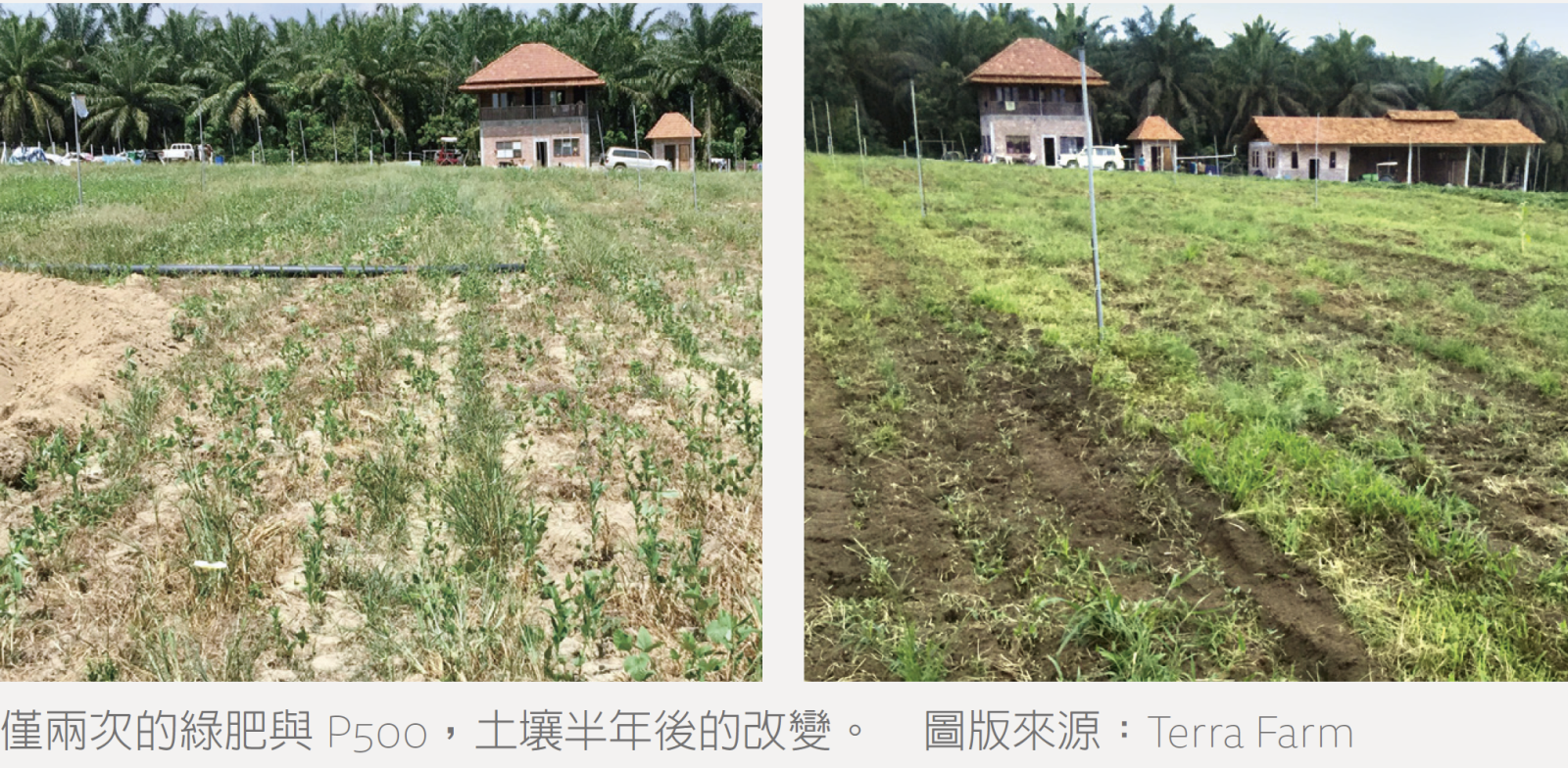 根據實務,由於製作與施放 BD 堆肥的材料與人力成本太高,讓 BD 或有機自然農耕很難實踐於大面積農場,但種植綠肥卻是可實踐的。在澳洲的 BD 經驗中,Podolinsky 發展出把 6 個堆肥配方加入已經在儲存箱存放了至少3 個月的BD500 之中,再經過3 個月的轉化而得到 P500(Prepared500),這個配方可以噴撒在剛還田的綠肥上,幫助把綠肥轉化成腐殖質,這就形成層狀堆肥,也就是直接在地堆肥。綠肥在生長期間,其根系在 BD500 的幫助下長出更多絨毛根,與菌群共同建立出深層的土壤結構,實際效果比使用堆肥更佳。使用堆肥種植的植物,根系多局限於土壤淺層。